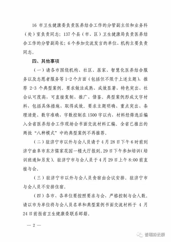 2019年全省醫(yī)養(yǎng)結合示范創(chuàng)建推進會暨醫(yī)養(yǎng)結合工作現場會2019年4月29日上午8時左右,山東普瑞森醫(yī)療設備股份有限公司各部門負責人在王總的帶領下參加在曲阜市舉行的“2019年全省醫(yī)養(yǎng)結合示范創(chuàng)建推進會暨醫(yī)養(yǎng)結合工作現場會”,并陪同省衛(wèi)健委領導參觀小雪社區(qū)衛(wèi)生服務中心醫(yī)養(yǎng)結合示范點。