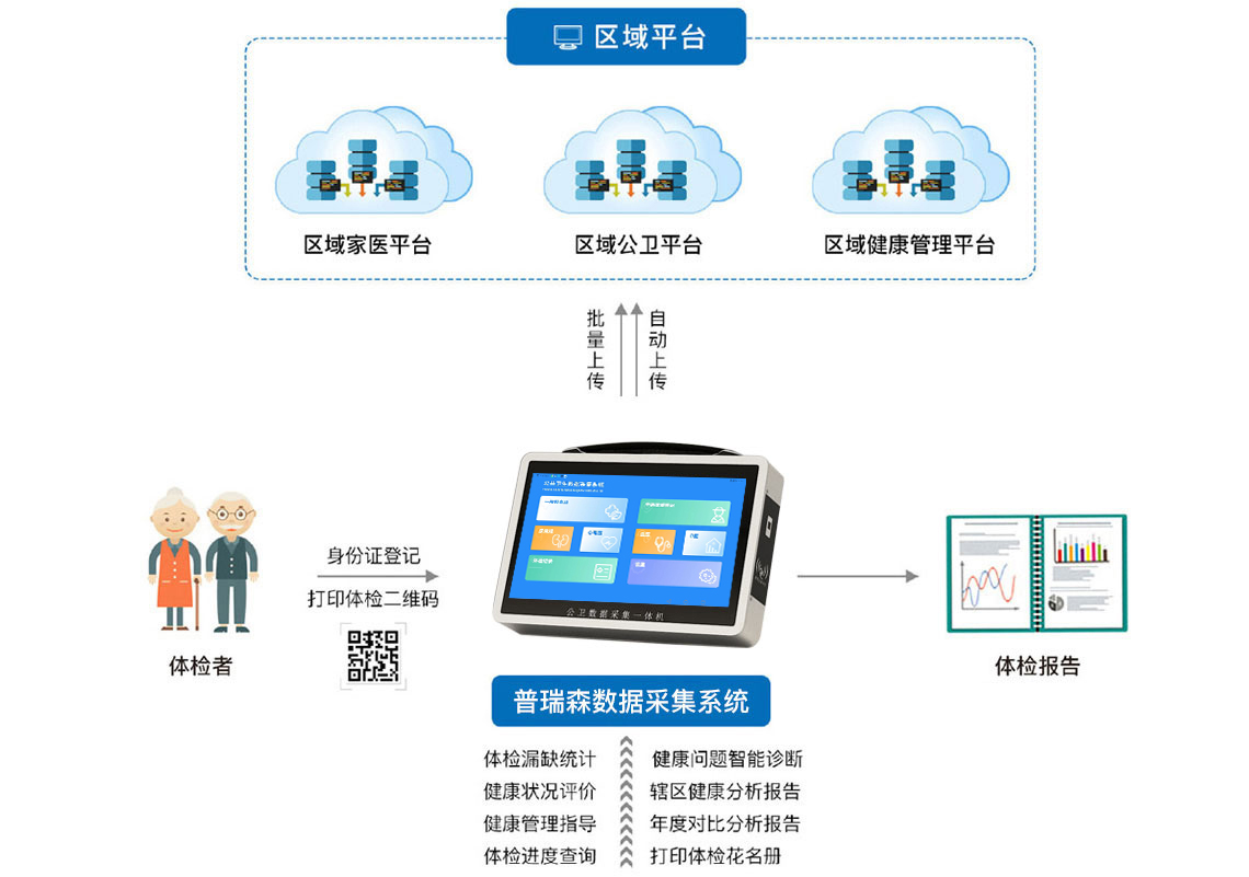 該系統(tǒng)按照縣、鄉(xiāng)、村三級應(yīng)用設(shè)計,以便捷式應(yīng)用、智能化應(yīng)用、多場景應(yīng)用為導(dǎo)向,按照滿足院內(nèi)專業(yè)體檢、下鄉(xiāng)便攜式體檢、移動體檢車體檢及區(qū)域化融合體檢等多種模式搭建,為基層醫(yī)療機構(gòu)公共衛(wèi)生信息化最后一公里提供一站式解決方案,實現(xiàn)國家“讓數(shù)據(jù)多跑路,百姓少跑腿”的相關(guān)要求。