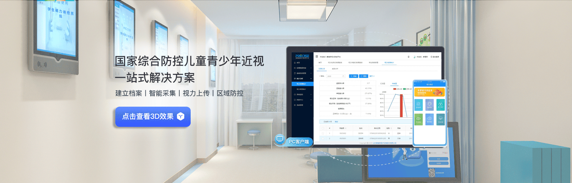 普瑞森青少年視力防控平臺是運用互聯(lián)網(wǎng)、物聯(lián)網(wǎng)和移動通信等技術(shù)快速篩查青少年視力并建立健康檔案的系統(tǒng)。由近視防控數(shù)據(jù)管理軟件系統(tǒng)、電子視力檢測儀、視力篩查儀組成,通過視力檢測篩查設(shè)備,自助采集匯總數(shù)據(jù)并上傳至云平臺。支持視力數(shù)據(jù)采集、查詢、統(tǒng)計、分析、存檔于一體,通過分析體檢者視力發(fā)展趨勢,對不同視力人群進(jìn)行健康干預(yù)和指導(dǎo)。